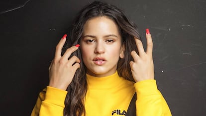 Resulta imposible huir de ella. Su música suena en el andén del metro de Barcelona porque un usuario despistado no ha encajado bien al móvil la clavija de los auriculares. Si para escapar de Malamente, su último gran éxito, quiere uno ponerse los cascos y refugiarse en Spotify, se encuentra con que la plataforma recomienda, con la foto de Rosalía, la lista de éxitos pop. No pasa nada. Se selecciona una canción y a otra cosa: Instagram. En el menú principal, Rosalía de nuevo. Con un chándal de terciopelo rojo amapola. La sudadera a la altura del pecho, el abdomen al descubierto y más de 116.000 me gusta. ¿Y en el muro personal? También. El ilustrador Juan Castaño ha querido pintarle un retrato. Lo acaba de subir a la red y comenta: “Para mí tiene un no sé qué que me ha hecho interesarme por el flamenco”. Lo impregna todo. Ha conseguido enganchar al género a un público que, si no fuera por ella, no lo escucharía. Tiene más de 548.000 seguidores en Instagram, a la altura de triunfitos como Ana Guerra, con 640.000, o Cepeda, con 589.000. Es el fenómeno del momento, hija de su tiempo. Mientras espera que comience la sesión de fotos, Rosalía coloca el taburete sobre el que se va a sentar pegadito a la pared. Está fundiéndose la batería del móvil y quiere tener el enchufe cerca. De vez en cuando se aleja para mandar un audio de WhatsApp y vuelve al taburete. Su smartphone, que lleva cubierto con una funda de peluche blanca y orejas de conejo, le sirve también como cuaderno de notas: “Siempre estoy con el móvil grabando ideas porque en cualquier momento puede surgirte una melodía o un ritmo”.