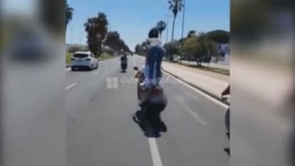 Así, con el análisis de las imágenes aportadas por el ciudadano y las gestiones desarrolladas, Guardia Civil verificó que el lugar en el que se habían grabado eran avenidas del Puerto de Santa María (Cádiz), donde se recoge el momento en que dos jóvenes circulan en una motocicleta, y "en un momento de la grabación, la pasajera se pone de pie encima del asiento de la motocicleta y con el único apoyo de una de sus manos sobre el casco del conductor, circula varios metros".