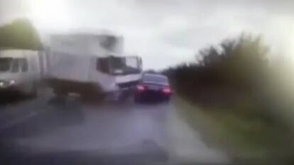 El vehículo de Ígor Dodon, que sufrió heridas leves, chocó contra un camión que invadió el carril contrario