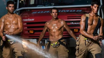 Sin camiseta y con poses seductoras. Es como posan los bomberos de Zaragoza en un calendario solidario, a favor de una ONG que promueve la donación de médula. El Ayuntamiento, que lo patrocinaba, no quiere que se venda porque da una imagen del hombre "heteropatriarcal" y "poco plural".