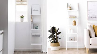 Uno de los consejos que dan los expertos de plataformas como Apartment Therapy para pequeños espacios es recurrir a mobiliario que casi no toque el suelo, como esta escalera estantería que permite organizar las cosas sin ocupar demasiado espacio. Se trata de aprovechar rincones que no te esperas, como por ejemplo, encima de las puertas con diferentes baldas, como estas de eBay (desde 10,86 euros) o sacando partido a cualquier esquina, como estas redondas, también de eBay (15,01 euros).
