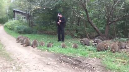 Eddy Lawrence decidió ir junto con un amigo a dar un paseo por un camino cercano a un bosque por el condado de St. Lawrence (en el estado de Nueva York, EE UU) el día 20 de septiembre. El joven músico estadounidense, decidió llevar con él su flauta nativa americana, sin saber que gracias a ella algo sorprendente ocurriría. Cuando llegaron a un lugar tranquilo, Lawrence decidió comenzar a tocar, y a los pocos minutos varios mapaches se acercaron a escucharle. En menos de tres minutos casi una veintena de animales se reunieron alrededor del flautista de Nueva York a escuchar su música.