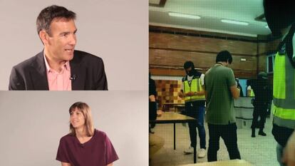 Raphael Minder, corresponsal de The New York Times en España desde el 2010, recuerda el 1 de octubre como el día más largo de su vida profesional. “Empecé a las seis de la mañana en un colegio electoral del Raval y ya noté que el día iba a ser raro. Fue una jornada bastante surrealista. Yo me preguntaba, pero '¿quién ha dado la orden a la policía de comportarse así?", asegura el corresponsal, autor del libro Struggle for Catalonia. Con el mismo adjetivo, "surrealista", define aquel día su compañera de profesión Sandrine Morel, corresponsal de Le Monde en España desde hace casi una década. "Había un ambiente de insurgencia real, era una lucha sobre quién era el más fuerte, los que salieron a votar o el Estado español", recuerda la corresponsal francesa, que también ha plasmado su vivencia del procés en el libro, En el huracán catalán. Los dos periodistas protagonizan la segunda entrega de Miradas al 1-O, un año después, en el vídeo de arriba.