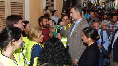 “Para qué necesito mantas si no tengo cama donde ponerlas” se lamentó una vecina de Sant Llorenç des Cardassar ante la reina Letizia. Los Reyes visitaron este viernes las zonas más afectadas por el desbordamiento del torrente que atraviesa la localidad mallorquina y que se llevó por delante la vida de 12 personas, además de un niño que todavía permanece desaparecido. Durante una hora los vecinos, voluntarios y miembros de los servicios de emergencias dejaron las palas, rastrillos, cubos y mangueras para recibir a Felipe VI y doña Letizia, que se interesaron por la situación y visitaron dos casas afectadas por la riada y recorrieron las calles del centro del pueblo acompañados por la presidenta balear, Francina Armengol, y por el ministro de Ciencia, Innovación y Universidades, Pedro Duque.