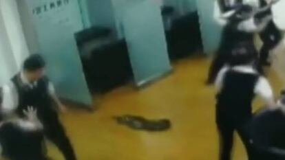 Una pitón gigante irrumpe por sorpresa en una reunión de trabajadores en un banco chino