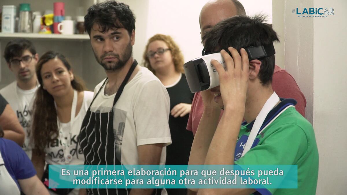 Un juego y Realidad Virtual, esa ha sido la solución propuesta por Sandoval. Con unas gafas, Lucas, con síndrome de Down, aprendió a hacer pan en una tahona digital. Una voz le daba indicaciones y él, con la mirada, escogía el ingrediente o utensilio pertinente; cuando acertaba, continuaba la tarea.