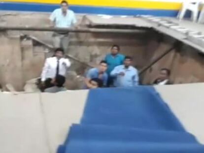 Una cámara de seguridad registra el momento en el que caen entre una nube de polvo