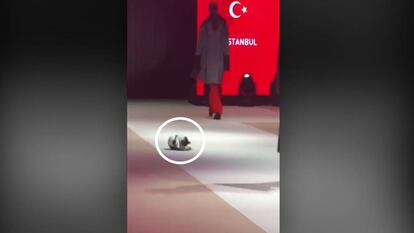 El felino sorprendió a las modelos de una pasarela de alta costura en Estambul