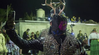 Pero las masas de turistas y curiosos no distraen a los disfrazados, centro gravitatorio de la fiesta. Lanzan al aire gritos de ánimo para que no pare el baile, insultan a la banda para que siga tocando entre canción y canción, vierten mezcal de la botella en la boca de los compañeros. Y sigue la juerga. Todavía se oye.