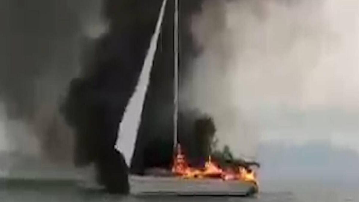 Arde un barco con nueve personas a bordo tras caerle un rayo en Tailandia