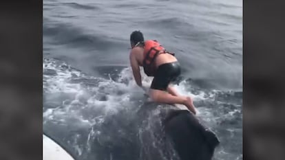 La tripulación de un barco logra salvar al animal, atrapado por una cuerda atada a una boya en California
