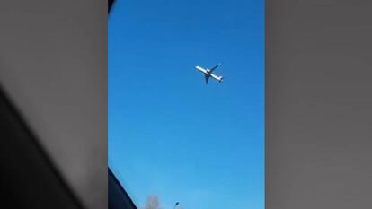 Un avión se queda aparentemente inmóvil a pocos kilómetros de aterrizar en el aeropuerto Vnúkovo de Moscú (Rusia), como se observa en un vídeo publicado este martes, 6 de noviembre, en la red social rusa Vkontakte. La imagen fue grabada por los pasajeros de un coche que circulaba por una carretera cercana, lo que justifica la ilusión óptica. Se trata de un fenómeno físico que se explica porque las velocidades angulares de la aeronave y el vehículo que se mueve en su dirección son las mismas en relación con los árboles o las farolas.