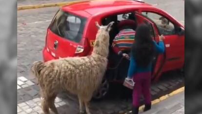 El vídeo de una llama montándose en un taxi en la cuidad de Cuzco, en Perú, acumula ya miles de reproducciones en redes sociales. Ante la repercusión de la grabación, en la que el animal se sube al vehículo con total destreza agachando la cabeza y dejando sitio libre para que su dueña se acomodara, uno de los medios locales ha salido en su busca. Josefina Quispe, de 78 años, cuida de la llama, de nombre Pablo Picasso, con la que viaja cada día al centro de Cuzco desde el barrio de APV Picchu Alto, donde reside. El diario peruano Correo ha entrevistado a la mujer, quien ha revelado que la idea de poner el nombre del pintor malagueño al mamífero fue de su nieta. Quispe ha recibido numerosos comentarios de cariño, pero también de crítica por utilizar a la llama para ganar dinero. Ella se defiende así: "Todos los días trabajo en Cuzco junto a mi llama, le doy su agua y su alfalfa y vive tranquila".