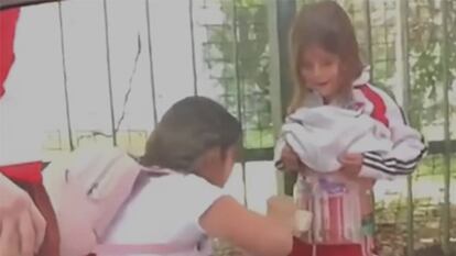 Es una de las escenas más tristes que ha dejado el fin de semana en el que la vuelta de la final entre River Plate y Boca Juniors ha tenido que ser suspendida dos veces por la violencia de los ultras. El sábado, fecha programada inicialmente para la disputa del partido que debía decidir cuál de los dos eternos rivales argentinos se proclamaba campeón de la Copa Libertadores, una mujer, supuestamente hincha de River, fue grabada adhiriendo bengalas al cuerpo de una niña, con el objetivo de introducirlas en el estadio Monumental.