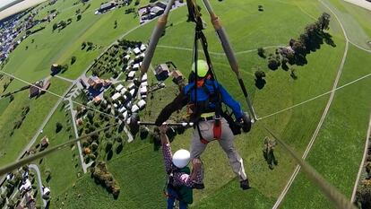 Un error provoca que un hombre vuele en un ala delta sin sujeción
