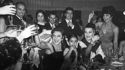 De bautizo se va Ava Gardner invitada por Lola Flores y el Pescaílla en uno de los capítulos de Arde Madrid. Recibe su hijo Antonio el santo sacramento allá por 1961 y por ahí andan también Carmen Sevilla, Marujita Díaz, Marisol, la duquesa de Alba... Aparte del gin-tonic, a la artista norteamericana y a la andaluza les unían la raza y el instinto para comerse las cámaras, los escenarios, al público y a varios hombres. De ahí su complicidad y su cercanía. Lola formó un clan de artistas y afortunadamente no vio morir a su hijo 15 días después de ella, en 1995.