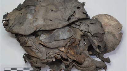 Debajo, estos dos sujetos "colocados ahí de modo ritual", según Conrado Rodríguez-Maffiotte, director del Instituto Canario de Bioantropología, que descarta que fueran gemelos. "Son anteriores al siglo XVI seguro, pero para concretar a partir de ahí tenemos que esperar a los análisis", asegura a EL PAÍS el investigador, que explica que los signos y el contexto ritual dan poca información en ese sentido "porque todo ha sido igual en la protohistoria". Uno de los dos pequeños es un bebé con un parto llegado a término y otro de unas 35 semanas, lo que descarta que sean fruto del mismo parto, pero no su posible parentesco, que se intentará determinar con el ADN. Tampoco se conocen los detalles de la muerte de estos guanches, nombre del pueblo que habitaba la isla de Tenerife antes de la conquista castellana en el siglo XV.