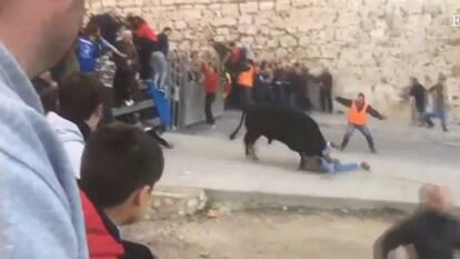Un toro embiste a un hombre en los encierros de Ontinyent