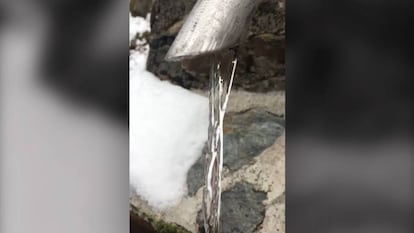 Las imágenes muestran el flujo de agua que emana de una fuente en Val Camonica (zona de los Alpes italianos) que parece estar congelada, pero se trata de un efecto visual. El fotógrafo Dario Bonzi publicó un vídeo en su cuenta de Facebook el pasado 3 de diciembre, para compartir esta curiosa ilusión óptica que recibe el nombre de flujo laminar estacionario. Según la Enciclopedia Británica, este fenómeno natural ocurre cuando el flujo, la velocidad y la presión de un fluido se mantienen constantes, de forma que el movimiento de la corriente se mueve de manera suave en láminas paralelas que no se mezclan entre sí. Se trata de un efecto bastante frecuente en líquidos espesos (como el aceite) pero difícil de ver en el agua. En este caso, las bajas temperaturas propiciaron un estado cercano a la congelación, por lo que el agua consiguió una textura más viscosa, que ha permitido la aparición de este fenómeno.