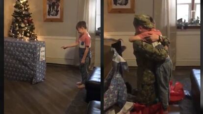 Contra todo pronóstico, hay niños, como este joven de Pittsburgh, en Estados Unidos, que en su carta de Navidad solo piden una cosa: ver a su familia. Uno de ellos es el sobrino de Jadin Hart, que grabó y compartió en las redes sociales cómo el pequeño veía su deseo hecho realidad cuando al abrir un paquete enorme descubrió a su padre, un militar estadounidense destinado en el extranjero. "¿Cómo estas coleguilla?", le preguntó al salir de la caja, a lo que el niño solo puede responder con un abrazo y un "te he echado de menos". Una escena que, año tras año, se repite en las redes sociales.