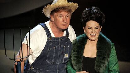 El presidente de Estados Unidos, Donald Trump, ha compartido en su cuenta de Twitter un vídeo en el que sale disfrazado de granjero cantando junto a la actriz Megan Mullally en los Emmy de 2005 para anunciar la firma de una ley agrícola de 867 millones de dólares. En el vídeo, que cuenta ya con millones de visualizaciones, se puede ver al magnate interpretando el tema de apertura de la comedia Green Acres, que se hizo popular en EE UU en los años sesenta. Minutos después del mensaje de Trump, Mullally escribió un un tuit expresando lo avergonzada que se sentía: "Si me necesitáis, estaré en un agujero bajo tierra".