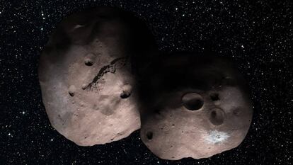 O menos. También cabe la posibilidad de que Ultima Thule no sea un solo cuerpo sino dos, girando uno en torno a otro a muy poca distancia. En ese caso, podríamos encontrarnos con que sus respectivos diámetros no llegan a los diez kilómetros. Imaginen un par de montañas flotantes dando vueltas una alrededor de otra y tendrán una imagen bastante aproximada de lo que puede ser ese pequeño planeta.
