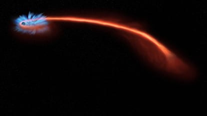 El año pasado se captó otro potente estallido de rayos X llegado de un lugar a apenas 10.000 años luz de la Tierra. Era un agujero negro de 10 masas solares que acababa de engullir una gran cantidad de polvo y gas que provenía de una estrella cercana. Un equipo de astrónomos de EE UU y Europa recurrieron al experimento Nicer, que comenzó a funcionar el año pasado a bordo de la Estación Espacial Internacional, para cartografiar el agujero negro en función de sus emanaciones de luz. Alrededor de estos cuerpos se forma un disco de gas y polvo a cientos de miles de grados sometido a la gran velocidad de rotación, lo que acaba descomponiendo los átomos. Los protones y los neutrones quedan en este disco de acreción mientras que los electrones forman una nube justo encima del agujero que recibe el nombre de corona. El estudio, publicado en la portada de la revista Nature, ha captado cómo esta corona se contrae decenas de kilómetros cuando el agujero se pega un atracón de materia estelar y escupe los potentes estallidos de rayos X.