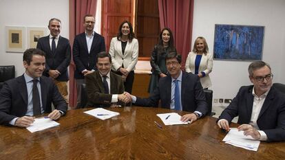 Las negociaciones para alcanzar un acuerdo sobre la presidencia andaluza han obligado a PP y Cs a defender un programa moderado que neutraliza la imagen ultra de Vox