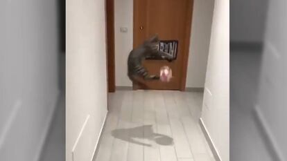 El talento de una gata como portera sorprende a los internautas