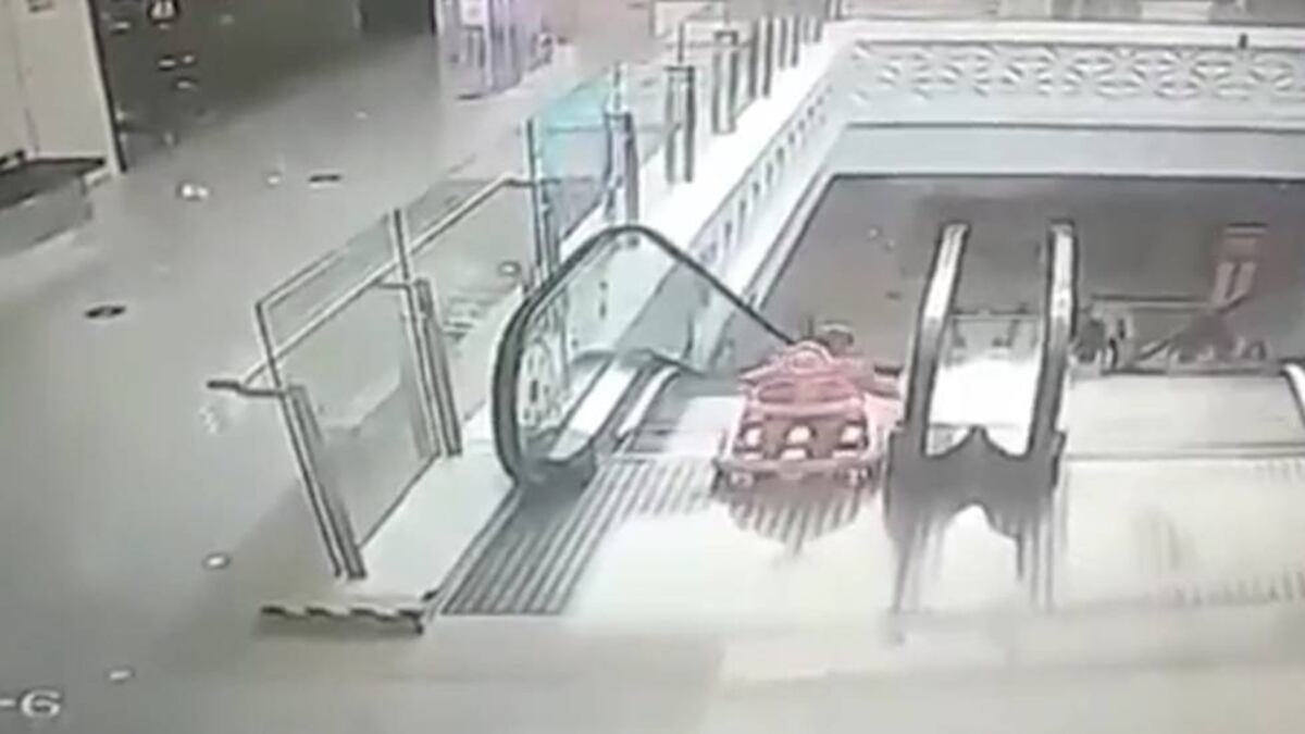 Un bebé de nueve meses cae por unas escaleras mecánicas en China