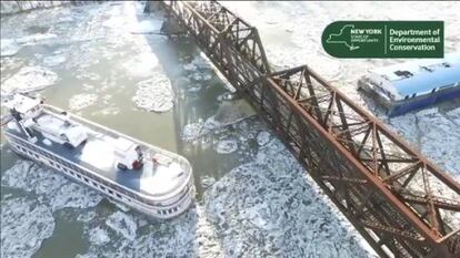 Al menos ocho barcos se soltaron de sus amarres y flotaron sin rumbo por el río Hudson, en Nueva York, el pasado viernes, antes de ser recuperados por remolcadores. Según informa el Departamento de Conservación Ambiental, flotaron hacia el sur por el río Hudson cinco barcazas, un remolcador, una minibarcaza y un barco turístico que sirve cenas en paseos por el río.