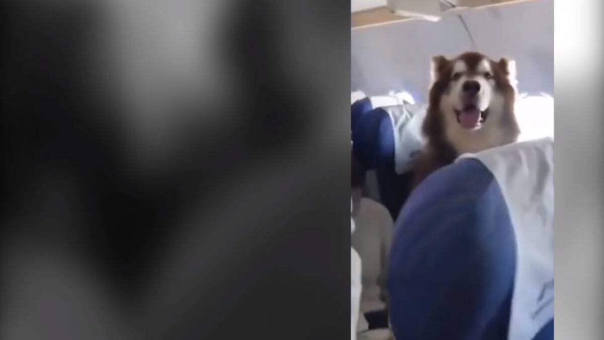 El enorme malamute de Alaska viaja en la zona de pasajeros en un vuelo de la aerolínea China Southern Airlines