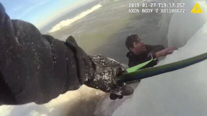 Rescatan a un hombre que se lanzó a un lago helado para salvar a su perro