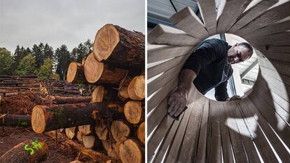 “Silencio, se rueda”, parece que ordena alguien, porque en la parcela 256 del bosque de Darney no han madrugado ni los pájaros. El silencio es casi total, salvo por el crujir de algunas ramas. A más de dos horas al este de Beaune, la capital borgoñona, apenas si hay claros en el monte, pese a lo cual es un robledal ordenado. Marc Ballard, responsable de compra de troncos del aserradero de Merrain International, reclama la atención y coloca un cordón de seguridad a unos 40 metros de un roble marcado. Lleva 28 años ayudando a sus clientes a elegir los mejores ejemplares, después de otros 15 en un aserradero familiar en el que aprendió a radiografiar los troncos con su mirada.