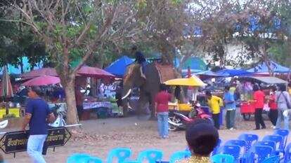 Por intentar buscar la foto perfecta, Nichanat Manuchan puso en riesgo su seguridad. La joven de 19 años se abrazó a la trompa de un elefante para sacarse una foto, pero el animal reaccionó de forma violenta y la arrastró por los puestos de una feria rural celebrada en Surin, Tailandia, según ha informado The Mail este sábado. Las imágenes, grabadas por los asistentes al evento, muestran el momento en el que la chica se cuelga de la trompa del animal. En pocos segundos, el elefante comienza a realizar bruscos movimientos contra los puestos ambulantes de alrededor, ante lo que un hombre reacciona golpeando al animal con un palo de metal para intentar que libere a la joven. Tras unos minutos de tensión, Manuchan logró bajarse del animal. El suceso le dejó heridas leves en un brazo.