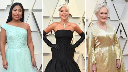 Y luego está Lady Gaga, que constituye una categoría en sí misma. Para la mujer que llevó filetes de carne sobre su cuerpo, la verdadera transgresión consiste en optar por una suerte de reinterpretación gagaina del Hollywood dorado: un palabra de honor con miriñaque en las caderas de Alexander McQueen, que dejaba todo el protagonismo al monumental diamante amarillo de Tiffany(128 quilates) que decoraba su cuello y que fue visto por última vez en el de Audrey Hepburn en, precisamente, Desayuno con diamantes. La otra estrella de la noche, Yalitza Aparicio, protagonista de Roma, apostó sobre seguro con un diseño azul celeste con un hombro al aire.