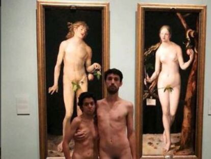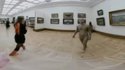 No es la primera vez que se ve algo parecido: un hombre paseando desnudo por las salas de un museo. Esta vez ha ocurrido en Rusia, en la Galería Estatal Tretyakov de Moscú. Lo hizo como parte de una performance que fue grabada y el vídeo ha sido distribuido ahora por la agencia Atlas. El joven era un artista que llevaba el cuerpo pintado de dorado y una pequeña prenda de ropa interior como única vestimenta. Así se paseó entre el resto de visitantes, fotografiándose con algunas de las obras de arte. Según la Policía, pertenece a un colectivo artístico que pretendía colocar sus propias obras en la pinacoteca.