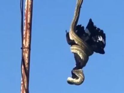 Un hombre ha sido grabado por las cámaras de seguridad de una tienda en Michigan (EstadosUnidos) mientras se metía una pitón en los pantalones para robarla. El departamento de policía de Rockwood difundió las imágenes el pasado martes en su página de Facebook para pedir ayuda a los ciudadanos en la identificación del ladrón. La serpiente, que iba a ser adoptada ese día, medía casi un metro y medio de largo. Nadie en la tienda sospechó del ladrón, que antes de salir del local gastó seis dólares para comprar un ratón, con la serpiente aún metida dentro del pantalón.