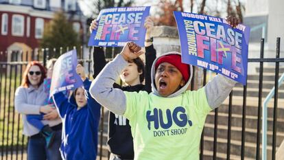 La Avenida W Norte, una de las arterias principales del West Baltimore.Xavier DussaqJerome Adams, 15 años, juega con una pelota de baloncestol un lunes por la tarde.Xavier DussaqLienzos morados por cada víctima de homicidio de este año, junto a los nombres, afuera de la Iglesia First and Franklin.Xavier DussaqActivistas participan de un acto para detener los tiroteos en Baltimore.Xavier DussaqUn policía y una activista se toman de la mano durante la manfiestación.Xavier DussaqKevin y su hijo Kemontae Spears posan con un balón de fútbol.Xavier DussaqRecuerdos en honor a Taylor Davis, una chica de 18 años a la que le llegó una bala perdida en marzo.Xavier DussaqLa candidata Tori Rose abraza a vecinos del Distrito 7, donde compite por un puesto en el Ayuntamiento.Xavier Dussaq"Debemos dejar de matarnos unos a otros", reza una pancarta en una protesta contra la violencia de armas.Xavier DussaqLa policía habla con unos vecinos en el West Baltimore.Xavier DussaqUn vecino del West Baltimore juega con la pelota de fútbol americano de un niño.Activistas de la ONG Baltimore Ceasefire piden abrazos en vez de disparos.Xavier DussaqErricka Bridgeford, una de las fundadoras de Baltimore Ceasefire, ONG que se dedica a realizar actividades en contra de la violencia de armas.Xavier DussaqMadres de hijos asesinados se manifiestan en contra de la violencia.Xavier DussaqUna "cadena humana" en contra de la violencia de armas en el West Baltimore.Xavier DussaqFachada de la Iglesia Fisrt and Franklin. Un letrero gigante dice "Reza por la Paz".Xavier Dussaq