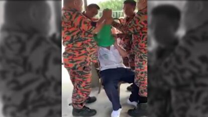 Un niño de 11 años se quedó atrapado en un cono de tráfico mientras jugaba en el colegio en Kuala Penyu, en el estado malayo de Sabah (Isla de Borneo). Todo comenzó como una broma, pero la diversión terminó cuando se dio cuenta de que su cabeza estaba atascada y no podía sacarla. Los profesores llamaron a emergencias y un equipo de cinco bomberos acudió en su ayuda. Después de 30 minutos pudieron liberarlo con la ayuda de una sierra. El menor no resultó herido. Según una portavoz del Departamento de Bomberos y Rescate de Kuala Penyu "el trabajo tuvo que ser muy cauteloso para evitar causar una lesión en la boca de la víctima". El suceso ocurrió hace semanas, pero se ha vuelto viral ahora en las redes sociales tras ser publicado el pasado 10 de abril.