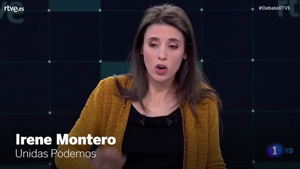 La portavoz de Unidas Podemos, Irene Montero, respondió a la cabeza de lista del PP en Barcelona y advirtió que de "ganar la derecha" una mujer se podría ver puesta en duda ante un aborto o una violación. Álvarez de Toledo amenazó con llevar a Montero a los tribunales por acusarla de justificar la violación: "¿Usted me está acusando de justificar la violación? Atrévase. ¿Es un delito, lo sabe? Cuidado con lo que dice".
