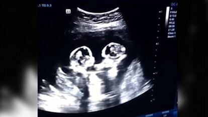 Una ecografía muestra a los fetos de solo cuatro meses dándose con las manos y los pies
