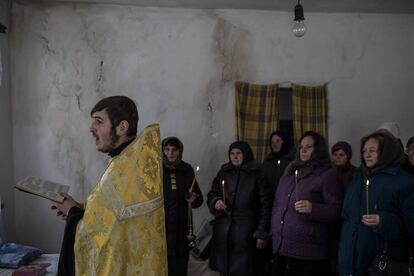 En Zadubrivka hay 900 vecinos. La iglesia del Arcángel San Miguel se construyó cuando la región pertenecía al imperio austrohúngaro. De aquella época es el imponente libro de rezos, que pasa de generación en generación. “¡Publicado en Viena en 1855 y escrito en eslavo eclesiástico!”, exclama el padre Leonid, mostrando el tomo encuadernado en cuero. No lejos de aquí, en el pueblo de Vaslovitsi, donde los fieles montan también guardia para evitar que su iglesia sea ocupada, hay otro libro igual, también en eslavo eclesiástico, pero impreso en Kiev en 1876.