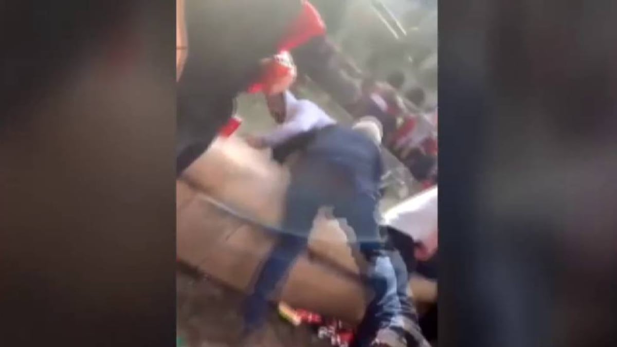 Un hincha del Liverpool tira a un vendedor ambulante a una fuente