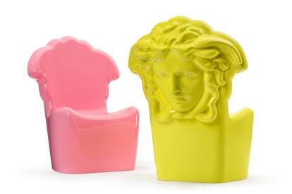 Cuentan que Gianni Versace encontró la imagen de esta cabeza de medusa por casualidad, y decidió convertirla en emblema de su firma de moda. En cualquier caso, esta efigie mitológica es hoy en símbolo de toda una leyenda de la moda y también la protagonista de una de las sillas más reconocibles de la casa. La colección Medusa Pop incorpora nuevos colores a este diseño emblemático, y anuncia nuevos rumbos en Versace Home Collection.