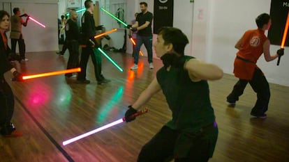 La lucha de sables láser nació como un delirio de una película de ciencia ficción en 1977. Más de cuarenta años después, ese delirio es un deporte oficial en Francia y, en España, quienes lo practican buscan conseguir el mismo reconocimiento. Varias academias imparten clases de combate con sables de luz desde hace años. Una de ellas es Ludosport, que cuenta con sedes en Madrid y Barcelona, y donde da clases uno de los referentes internacionales de este “deporte”.