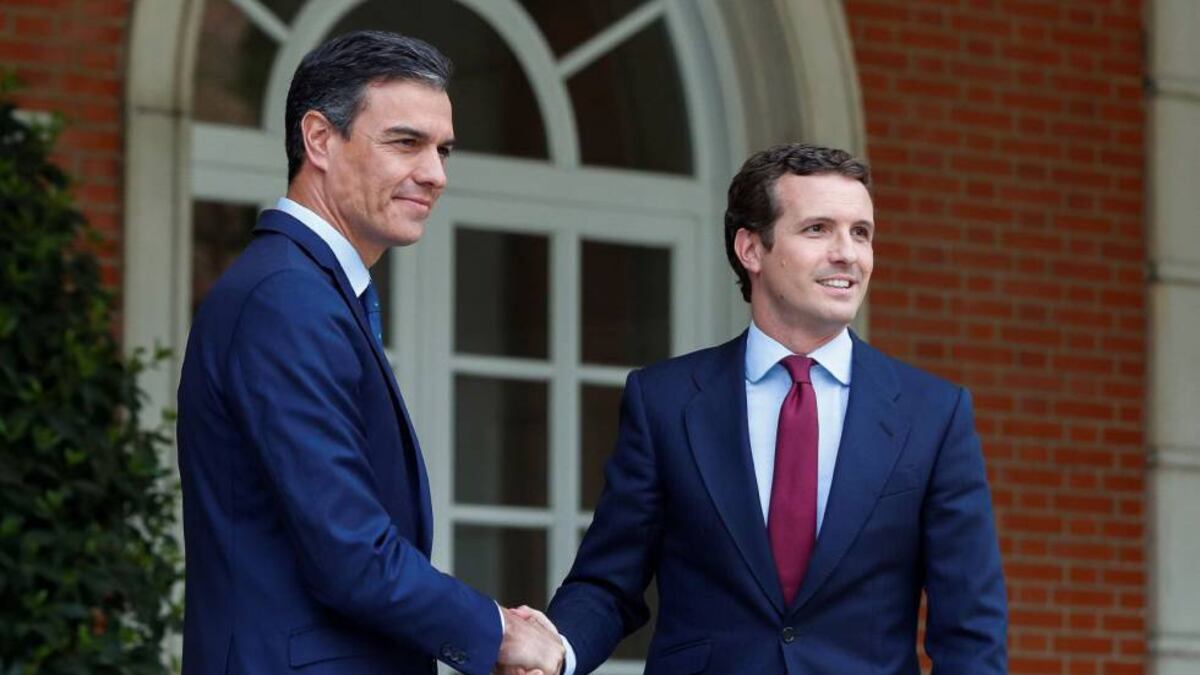 El giro de 180 grados de Pablo Casado tras su dura derrota electoral se completó este lunes en La Moncloa, donde inauguró un tono muy diferente con Pedro Sánchez, al que hasta hace poco llamaba traidor, felón, okupa o sucedáneo de presidente. Las elecciones han marcado un cambio de rumbo de tal calibre que ambos pactaron abrir un canal de comunicación permanente sobre Cataluña, algo impensable hace unas semanas. Casado explicó que el PP no facilitará con su abstención la investidura de Sánchez, pero invitó a Ciudadanos a hacerlo para evitar que el Gobierno de España dependa de los independentistas.