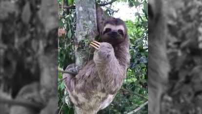 El rescate de un perezoso que parece sonreír a su salvador ha conmovido a los internautas y se ha hecho viral en redes sociales. Las imágenes muestran el momento en el que el José Aldenizio, de 50 años, detiene el tráfico para sacar al animal de la carretera, situada en la calle en Angra dos Reis (Río de Janeiro, Brasil), y lo deja en el tronco de un árbol. El vídeo del rescate fue publicado por su hija, Gabrielle Araujo, el pasado 8 de mayo en Facebook y, hasta el momento, ha sido compartido por más de 600.000 personas.