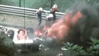 Niki Lauda iba a revalidar su título de campeón del mundo a bordo de su Ferrari 312 T2. Tenía solo 27 años. Aquel 1 de agosto de 1976 había llovido sobre la región de Rheinland-Pfalz y el asfalto de la pista estaba todavía mojado. Habían transcurrido dos vueltas de la carrera cuando el piloto perdió el control de su bólido y se estrelló contra el guardarraíl. Milagrosamente, salvó la vida.