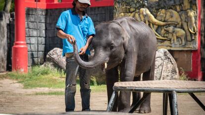 Dumbo, una cría de elefante del zoo de Phuket (Tailandia) ha muerto tras romperse las dos patas traseras como causa de malnutrición severa, según ha explicado un veterinario a medios locales. El elefante tenía tres años y era obligado, junto a otros dos paquidermos, a bailar y realizar trucos para los turistas que visitan a diario estas instalaciones. En las fotos y vídeos que la ONG Moving Animals ha enviado a los medios se puede ver como el animal presentaba una apariencia poco sana y como se le marcaban los huesos. “Su esquelético cuerpo sugiere claramente que el animal no recibía un buen cuidado, que sufría malnutrición y que estaba explotado. Y pese a los síntomas, el zoo no hizo nada”, explican desde la ONG.